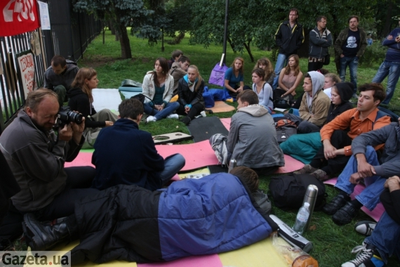 40 хлопців та дівчат сидять на карематах. На них вони й ночували. З ними був і нардеп-"нунсівець" Андрій Парубій.