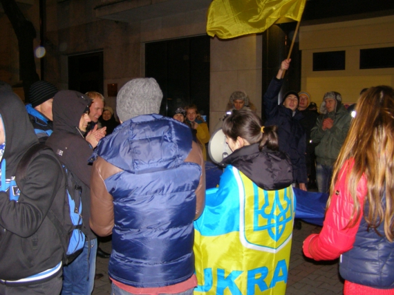 Проводить мітинг Наталія Панченко, аспірантка Полтавскьої державної аграрної академії. Дівчина приємно вразила присутніх новиною про лист від молоді Донецька до Львівських студентів, у якому говориться, що серця донечани б'ються з львів'янами в унісон. Варшавські студенти тепло прийняли цю звістку. Мегафон для виступів та організатори надають усім бажаючим взяти слово.