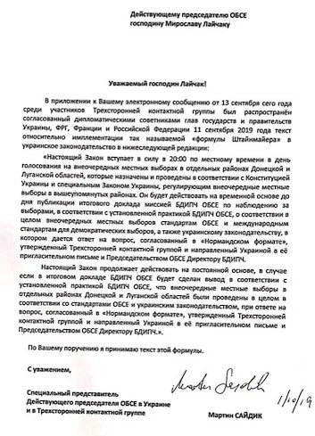 Представник ОБСЄ Мартін Сайдік, на адресу якого писали листи, у свою чергу, написав звернення до чинного голови ОБСЄ Мирослава Лайчака.