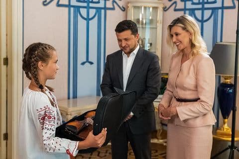 Цього тижня Зеленський із дружиною вручив медаль "За врятоване життя" 12-річній Тетяні Тулайдан. Дівчинка під час повені на Закарпатті врятувала життя чотирьох дітей. Вона вимкнула електрику в домі, взяла свого 7-річного брата та трьох сусідських дітей і відвела їх на горище. Тетяна показала президентському подружжю свою скрипку. Дітям подарували подарунки.