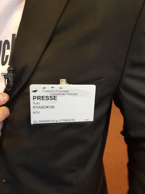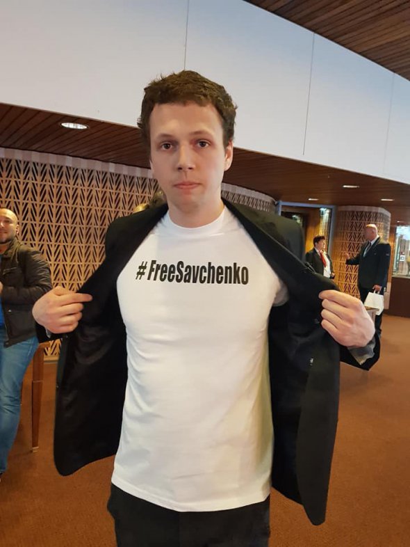 Зокрема, на засіданні Парламентської асамеблї Ради Європи з'явився журналіст прокремлівського телеканалу НТВ у футболц і#FreeSavchenko.