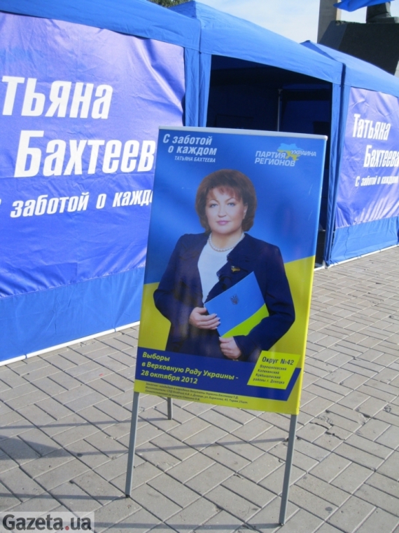 Зайважимо, що пл. Леніна в Донецьку постійно переповнена наметами тільки однієї правлячої партії, рясно прикрашена біло-блакитною символікою та рекламою кандидатів-"регіоналів".