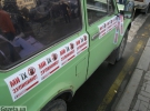 Машина Пономаренка очолює колону. Замість мигалок на даху авто прикріплені блакитні пластмасові відерця. "Шістка" Пономаренка повністю обклеєна антипрезидентськими наклейками. Через це автомобіль кандидата регулярно зупиняють на дорогах для перевірки документів.