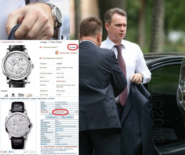 На руці нещодавно обраного голови ЦВК видно годинник німецької марки A. Lange & Sohne (модель Lange 1. Time Zone).