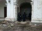 Міліціонери не погоджуються впустити у середину, кажуть, це небезпечно. Бо може впасти дах. Його після пожежі визнали аварійним. У вікні на першому поверсі та через шпарини видно, що у дворі чергують близько двадцяти міліціонерів. Стоять групками по декілька осіб під ялинками та слухають музику, що лунає з круглого магнітофону. Також видно працівників будівельної компанії, які продовжують щось робити.