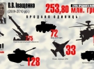 "Найбільші розпродажі відбулися до 2005 року. Більшість документів втратили чи знищили. Військова прокуратура відновлює ці матеріали на перевірках комерційних фірм, які проводили оборудки. У період 2005-2014 років продали військове майно за 1 837 299 000 гривень", - зазначив генпрокурор.