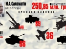 Він нагадав, що у спадок від Радянського Союзу Україна отримала понад 6 тис. танків, 6,5 тис. одиниць артилерії, майже 5,8 тис. бойових машин, понад 1000 бойових літаків, 400 вертольотів.