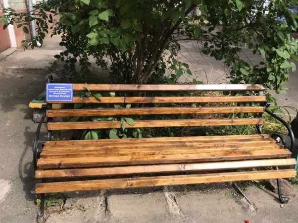 У Вінниці біля залізничного вокзалу у дворі з'явилися лавки з табличками "Шановним мешканцям будинку від депутата Вінницької міської ради Віктора Мацери".