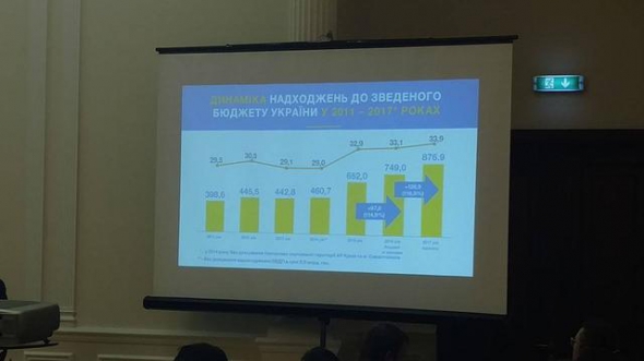 Згідно з проектом держбюджету на 2017 рік, доходи прогнозуються на рівні 876,9 млрд гривень, що на 17% більше, ніж доходи держбюджету 2016 року, передає "Цензор.НЕТ".