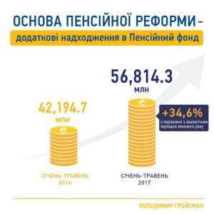 Гройсман додав, що дані з Пенсійного фонду показують, що надходження ЄСВ за 5 місяців цього року збільшились порівняно з аналогічним періодом минулого майже на 35%.