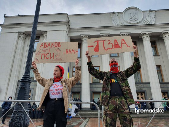 Під Верховною Радою зібралася громадськість, яка вимагала відставки Арсена Авакова з посади міністра внутрішніх справ. Сьогодні парламент під час години запитань до уряду заслуховували доповідь керівника МВС.
