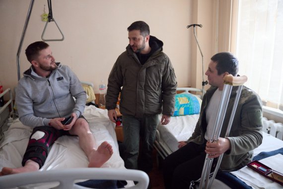 "По-бойовому. Хоч зараз на фронт", – сказав поранений воїн президенту на запитання про самопочуття.
