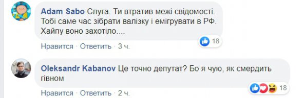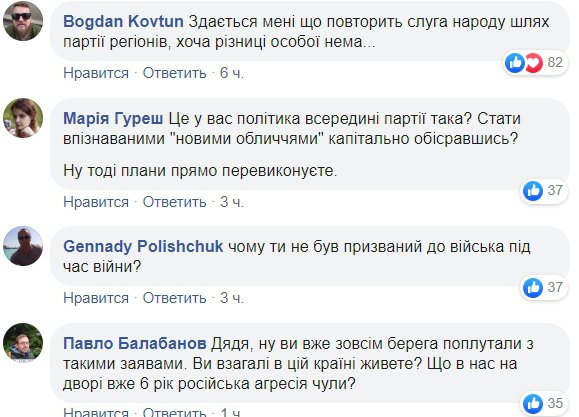 Інші користувачі приєдналися до дискусії, залишивши сотні незадоволених коментарів: "Ти слуга якого народу?", "Яка ганьба – таке писати!", "Боже, від цих людей залежить якість нашого життя!", "Це бридко!", "Яка трагедія, що ви прийшли до влади!", "Це в Трускавці навчили?", "Сором і ганьба", "Ви гальмо, а не депутат!", "Антинародний депутат!", "Смердить гів*ом!".