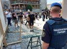Після прибуття підкріплення поліція відтіснила "Нацкорпус" від декорацій, але присутні вже встигли зламати дві інсталяції.