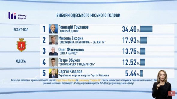В Одесі Геннадій Труханов - 34, 40%. Він виходить у 2 тур.