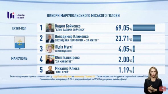 У Маріуполі Вадим Бойченко - 69, 05%. Він теж, якщо довіряти дослідженню, пермагає у першому турі.