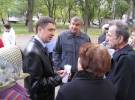 Каже, що підтримує кандидата в народні депутати від Об'єднаної опозиції по округу №197 Леоніда Даценка. На питання людей щодо комуністів, В'ячеслав Анатолійович запевнив, що це та ж Партія регіонів.