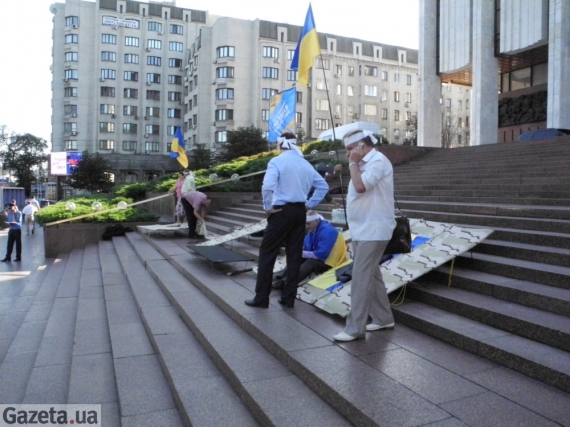 Сьогодні шестеро народних депутатів від опозиції оголосили безстрокове голодування під стінами Українського дому після прийняття у другому читанні законопроекту "Про засади державної мовної політики".