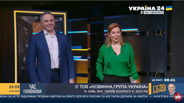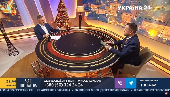 На іншому скріншоті ведучий Василь Голованов - з Андрієм Портновим, заступником глави Адміністрації президента Януковича, якого назиають одним з авторів "диктаторських законів 16 січня".