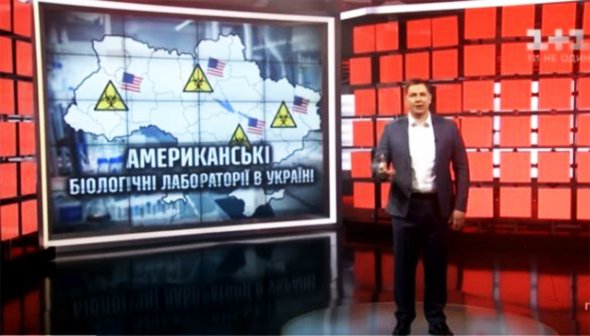 Одним із приводів для війни проти України росіяни називають "секретні біолабораторії США". На скірншоті - ведучий Євгеній Плінський в ефірі "1+1".