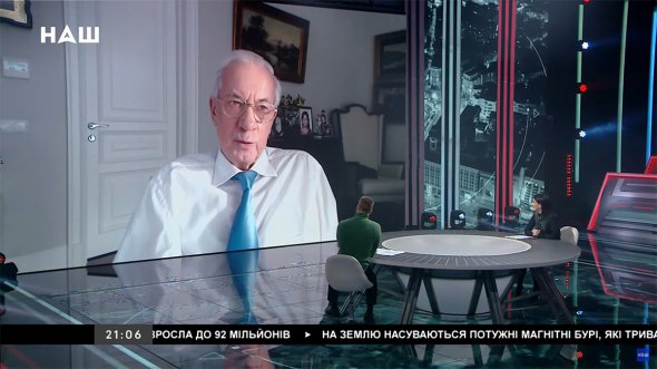 Телеведучий Володимир Полуєв і прем'єр-втікач часів Януковича Микола Азаров.
