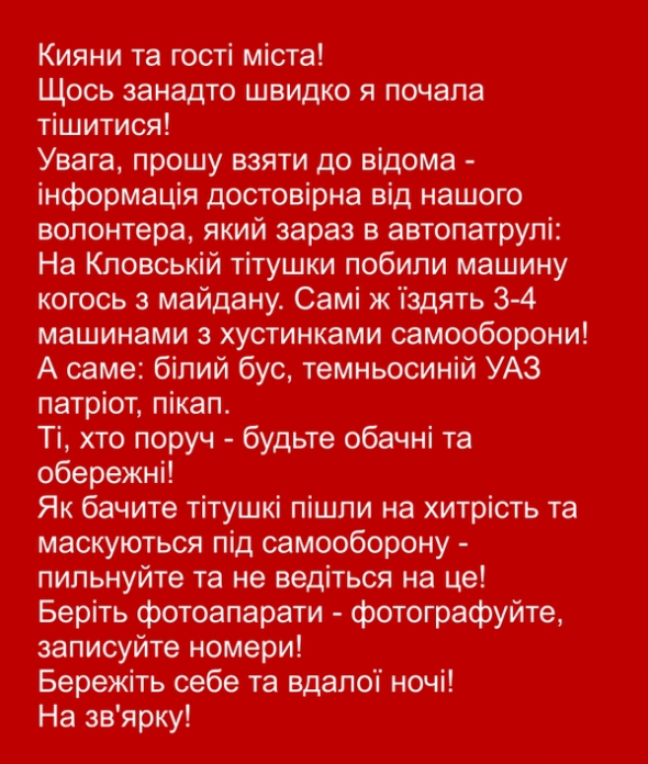 У мережі Інтернет киян попереджають про вигляд "тітушок", які курсують столицею.