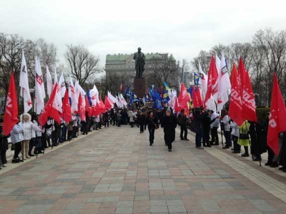Представники опозиційних партій "Батьківщини", "Свободи" й "УДАРу" поклали квіти до пам'ятника Тарасу Шевченку в центрі Києва з нагоди 199-ї річниці від дня народження Великого Кобзаря.