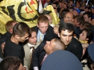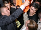 На фото зафіксована бійка між представниками політичної партії "Народний Союз "Наша Україна" і Прогресивної соціалістичної партії України за перші місця в рядах бажаючих віртуально поспілкуватися з тепер уже екс-президентом.