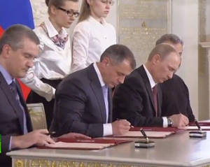 Сьогодні президент Росії Володимир Путін підписав з самопроголошеними представниками "влади" Криму "договір" про вступ Криму та Севастополя у склад РФ.