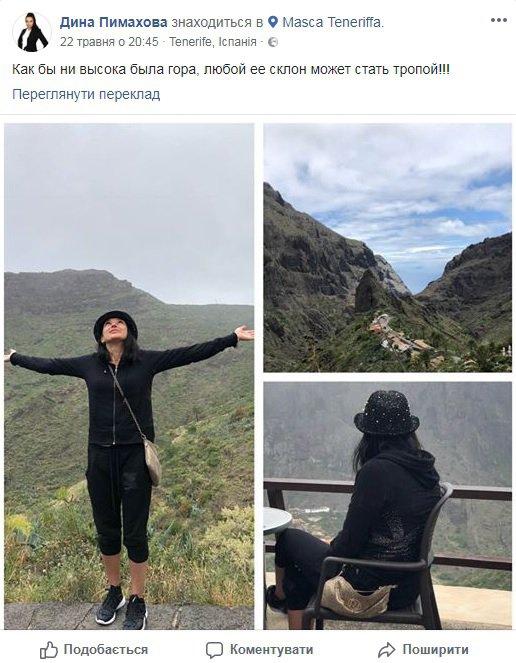 Останні тижні Пімахова постить у Facebook фото з Іспанії.