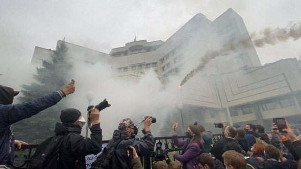 Сьогодні громадськість зібралася під Конституційним судом на акцію протесту "Відправимо суддів-зрадників до Ростова".