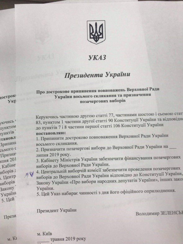 У командні новообраного президента ще не прийняли рішення щодо виборів, однак про всяк випадок підготували проект указу. Видання припускає, що команда Зеленського розглядає варіанти розпуску Верховної Ради і шантажу нардепів для їхнього примусу до співпраці.