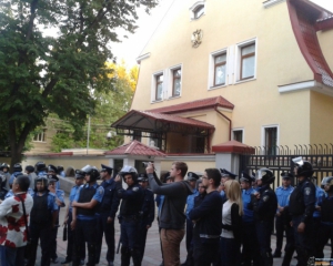 Нагадаємо, 18 вересня в будівлі російського посольства повинні відкрити дільниці для голосування на виборах в Державну думу РФ. Українська влада заборонила відкривати виборчі дільниці.