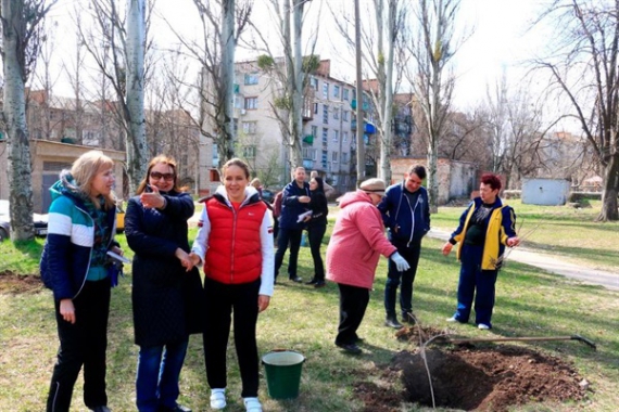 Суботник відбувався у парку біля пам'ятника, присвяченого жителям міста, загиблим під час бойових дій у квітні-липні 2014 року.