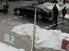 Автівка, що вчинила ДТП, залишилася на місці події. На її капоті є вмятина, розбите лобове скло. Інші машини кортежу продовжили рух.