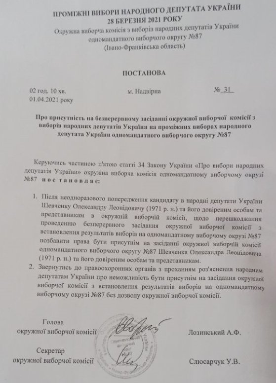 28 березня в окрузі № 87 проходили вибори народного депутата. Кандидат від "Слуги народу" Василь Вірастюк і від "За майбутнє" Олександр Шевченко заявляли про свою перемогу.