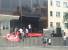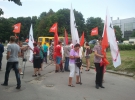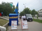 На площі розкладено шість наметів. Чотири – УДАРу, поодному "Батьківщини" та "Свободи". Біля дороги стоять молоді чоловіки, на вигляд років 20, із партійними прапорами.