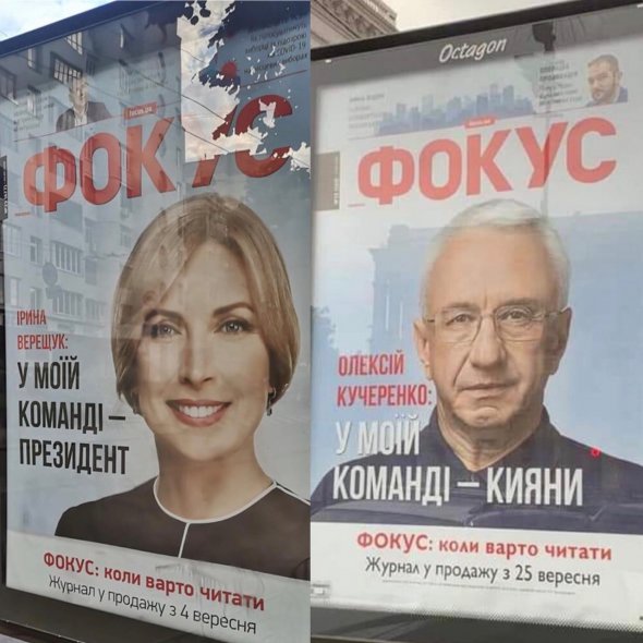 "В моїй команді - президент", - заявила на початку вересня з обкладинки видання кандидатка в мери столиці від "Слуги народу". На що претендент від "Батьківщини" також у "Фокусі" відповів наприкінці місяця: "В моїй команді - кияни". У ФБ одразу оцінили такий PR-хід.