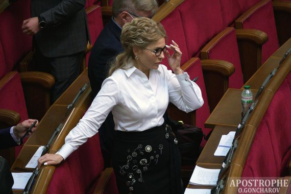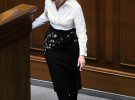 Доповнила свій образ лідерка "Батьківщини" окулярами в чорній оправі та чоботами на високих підборах.