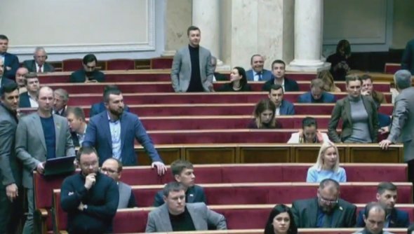 Передні ряди зали, де знаходяться місця фракції "Слуга народу", були напівпорожні.