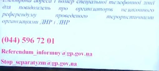 "У ГПУ відкривається пряма телефонна та електронна лінія для повідомлення громадян, які мають прямі данні про організацію сепаратиських референдумів та фінансування терористичнх організацій ЛНР-ДНР", - заявив генпрокурор.