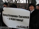 Люди тримали у руках плакати, у яких засуджували владу та вимагали її відставки: "Азаров, Тігіпко – ви винні у смерті людини", "Геть режим олігархів і бандитів", "Міністра МВС – у відставку", "Оптимізувати уряд, а не школи".