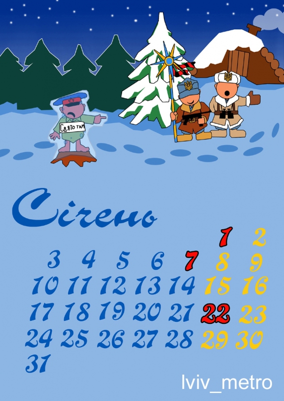 У мережі "Живий журнал" на сторінці групи lviv-metro з'явився тематичний календар на новий 2011 рік. У ілюстрація показані повішані депутати, задавлені катком прихильники Віктора Януковича, підірваний маєток президента в "Межигір'ї". Подробиці про творців і сам проект поки невідомі.