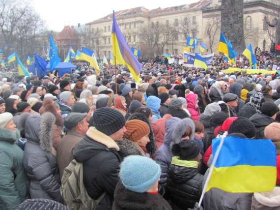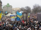 До учасників майдану що півгодини приєднюються нові колони людей. Переважно це студенти, які самі себе відпускають з пар. Під вечір тут очікується до 50 тисяч народу.