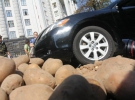 Позафракційний депутат Олег Ляшко спочатку провів акцію протесту на захист вітчизняного виробника під Кабміном, а сьогодні приніс відро картоплі парламентарям.