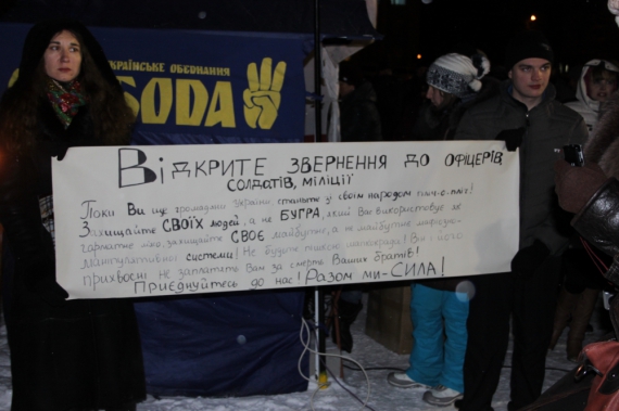 - Та облишмо ті заклики, що міліція з народом, - кричить у гучномовець Олександр Симчишин. – Міліція вже давно не з народом. Вони стріляють у народ.
