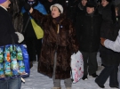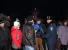 З військового намету, що стоїть за кілька десятків метрів від наметів активістів, виходить чоловік у ондатровій шапці. Викрикує: "Хто хоче їхати до Київа!?". З кожною хвилиною прибувають люди. Коли їх збирається близько сотні, починають викрикувати гасла.