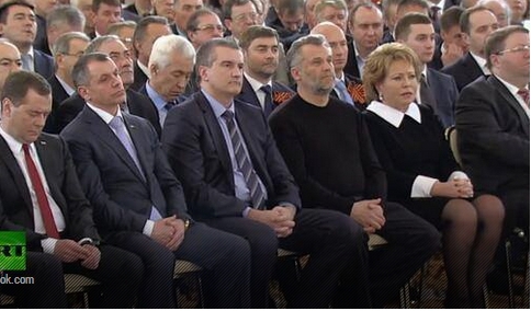 Голова російського уряду Дмитро Медведєв, як і під час відкриття сочинської Олімпіади, задрімав під час виступу президента Путіна щодо приєднання Криму.