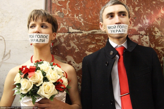 Поки в Москві опозиція готується мітингувати на майданах проти нечесних виборів, нечисленна група активних громадян влаштувала флеш-моб в метро.