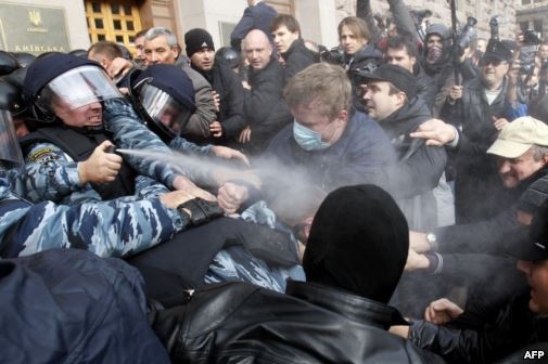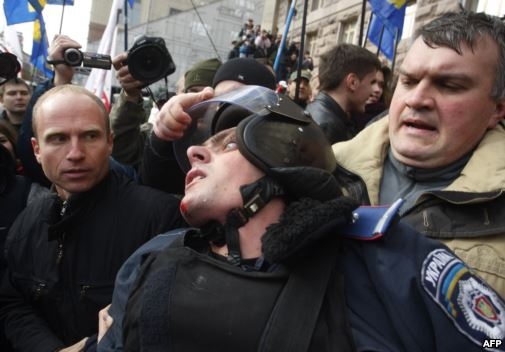 Нагадаємо опозиція проводила сьогодні під Київрадою збори киян, під час яких сталися сутички між активістами, що хотіли зайти до приміщення Київради на її засідання, і "беркутівцями". Опозиція вважає, що Київрада після 2 червня є нелегітимною, оскільки закінчився її 5-річний термін повноважень і вимагає призначити вибори в Києві.